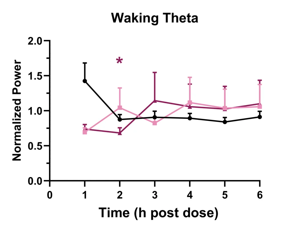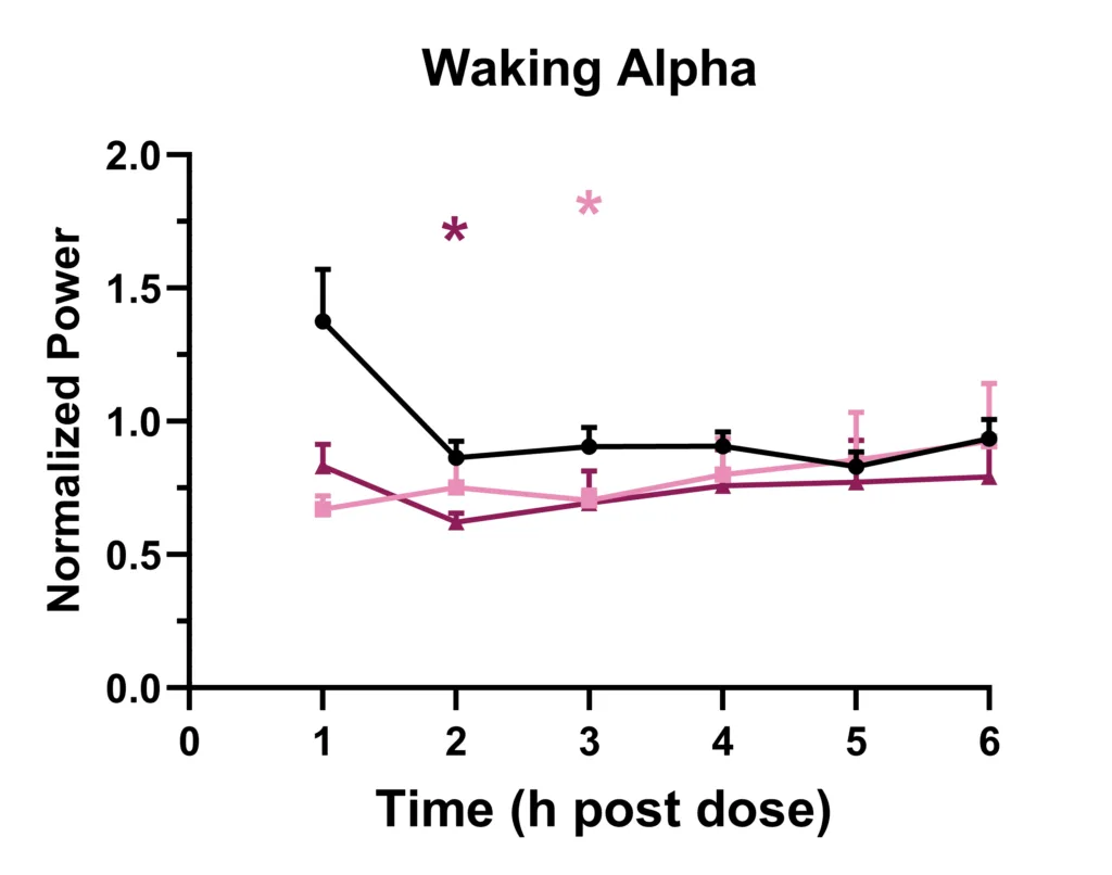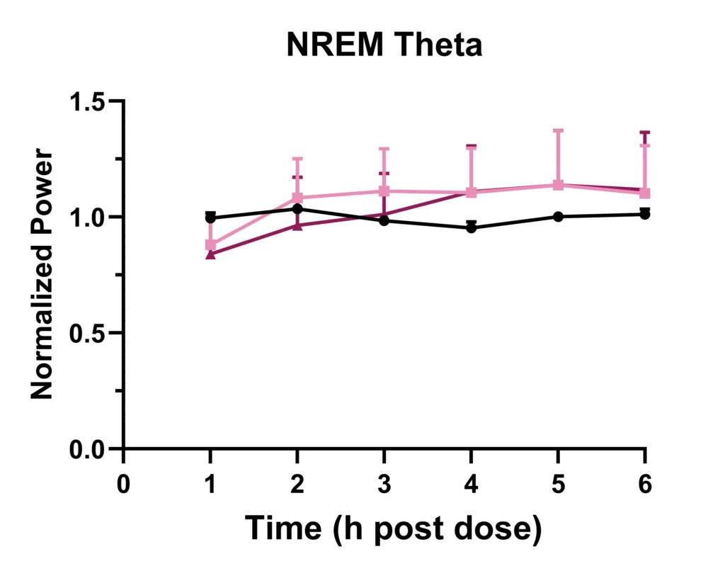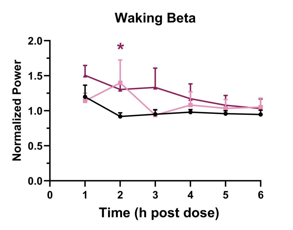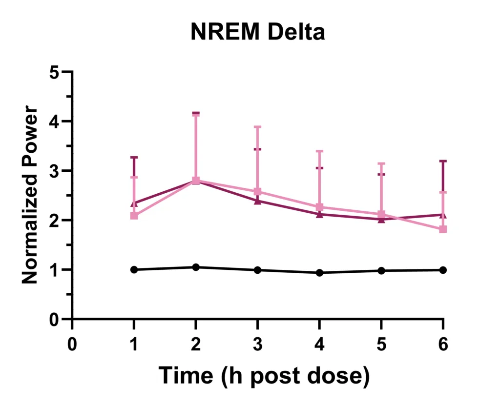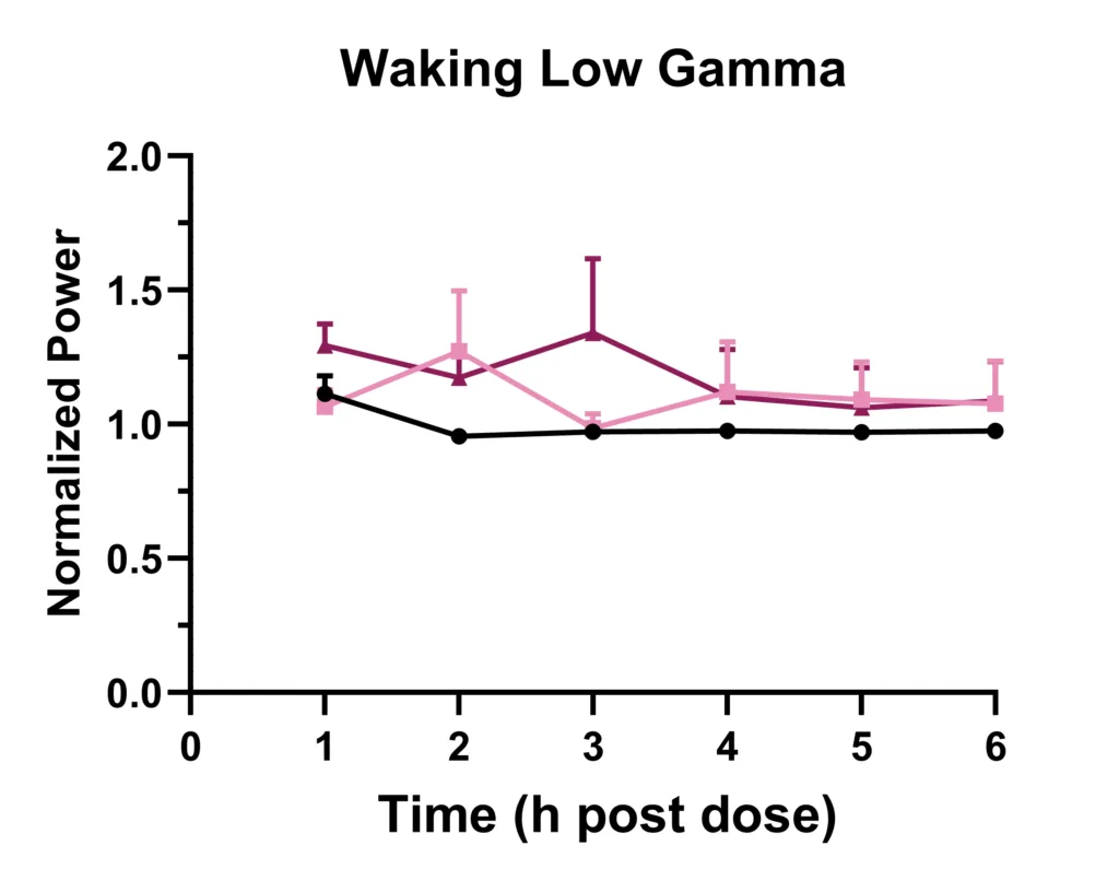 PsychoGenics has deep knowledge of sleep/wake analyses and provides the highest quality EEG data. A full characterization of EEG patterns includes sleep/wake analyses, careful artifact removal for high quality power analyses, spectral power density analyses within each state, and a characterization of any aberrant EEG waveforms such as unusual spiking or seizure activity. These careful analyses provides the best opportunity for finding EEG biomarkers that are translational to the clinic. Below are example data on zolpidem, a standard sleep-promoting compound.